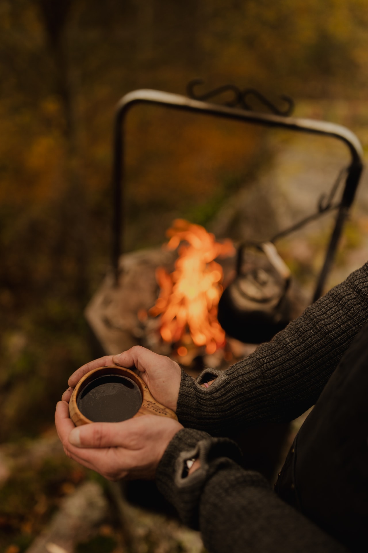 Sytytämme nuotion ja valmistamme illanviettoon pientä purtavaa: kuppi kuumaa paikallista mehua perinteisestä kupilka-kupista
