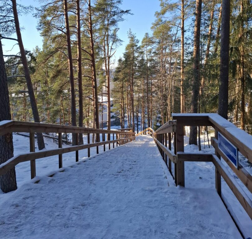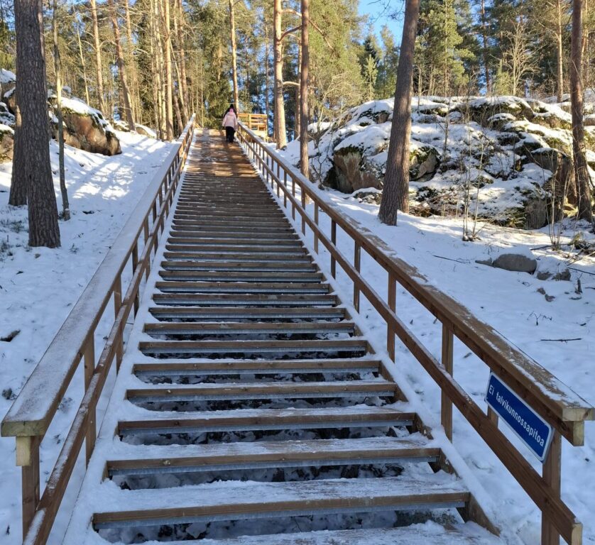 Portaiden keskiosassa on penkillä varustettu tasanne. Myös ylätasanteella on penkki. Portaat nousevat ensimmäiselle tasanteelle asti jyrkempänä ja loppunousu on loivempaa. Portaissa on kaiteet molemmin puolin. Kaiteisiin asennetaan led-valaistus (valaistustyö vielä kesken).